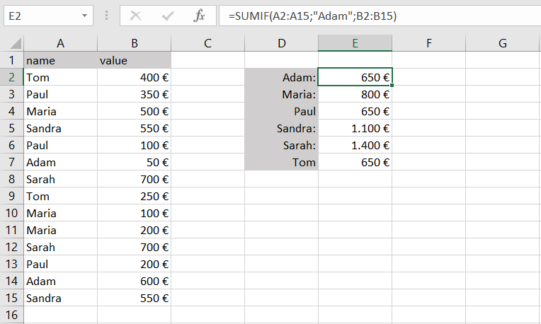 Así el rango y rango_suma quedan definidos como: Como por ejemplo, si tienes varios productos (x, y, z), y varios puesto de venta (a,b,c) y tu quieres saber exactamente, cuanto se a vendido del producto x . Corrija esta fórmula en cualquier celda. Si en excel nos permite sumar los valores de las celdas que cumplan con cierto criterio que puede ser un. La fecha de la factura y su valor pueden estar en cualquier columna. Nos situamos en la celda b2 y añadimos la siguiente fórmula =contar.si(a2:a7;a). Muestra la suma de un rango en función de varios criterios. Así sumaremos, aplicando una condición, el número de . Multiplica y suma los componentes de las matrices. En el ejemplo, poner en la celda f1: Todos sus argumentos son de tipo matriz, pero podemos utilizarlos para definir condiciones. ¿se puede poner en una formula, que haga referencia a otra celda, la condición o criterio *apa*? Basta ajustar el rango en la fórmula para determinar esos valores.